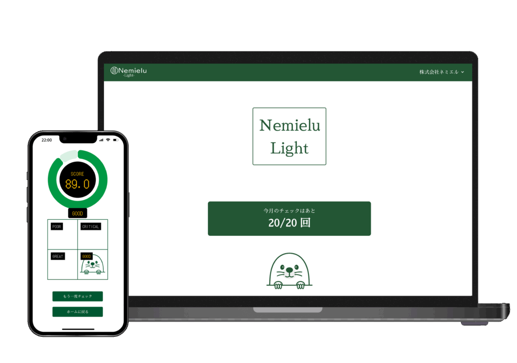 当社の既存サービス「NemieluBasic」は、主に中規模から大企業を対象とした睡眠施策の実施を目的とした製品でした。しかし、小規模事業者からも従業員の健康維持や予防策に関するニーズを多くいただいたため、この度、月額5,000円(税抜)から手軽に始められる「NemieluLight」をリリースいたしました。